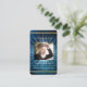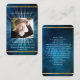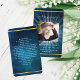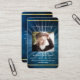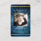 Um céu azul escuro como fundo, uma falsa estrutura dourada e espaço para a sua foto. Feixes de luz, atrás da foto. Personalize e adicione nome, datas e texto e oração.