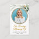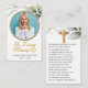 Cartão de oração totalmente personalizado com uma cruz decorativa na parte traseira e versos de oração que você pode personalizar. O cartão de oração vem com uma foto personalizável e personalizada e com um nome e data personalizados do funeral. O design apresenta um script e estilo de escrita manual/caligrafia junto com fontes elegantes e clássicas.