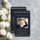 Um fundo azul escuro, uma falso estrutura dourada e espaço para sua foto. Personalize e adicione nome, datas e texto.