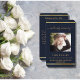 Um fundo azul escuro, uma falso estrutura dourada e espaço para sua foto. Personalize e adicione nome, datas e texto.