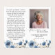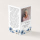 Esta versão dobrável do nosso adorável Cartão de Oração de Foto Floral Azul e Branco é uma forma gentil de convidar seus amigos e família para celebrar e lembrar a vida de seu amado. A sua design pacífica oferece consolo e um toque de beleza para todos os que alcança. Há um lugar para a sua fotografia e detalhes pessoais na frente, junto com uma tipografia bonito. O dentro inclui lugares para mais duas fotos, uma nota de obrigados e quaisquer outros pensamentos ou menções que você gostaria de incluir. Colocamos Salm 23 atrás, junto com um design floral correspondente, mas nos sentimos livres para substituir o texto por sua passagem ou citação favorita. Procure por peças complementares como cartas de agradecimento, convites, etc. em nossa Coleção Memorial Funeral Floral e Azul Dusty, ou nossos maiores Memoriais e Celebrações da Coleção de Vida.