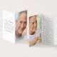 Nossas pequenas cartas de oração memoriais medem 2" x 3,5" quando dobradas. Esta design tem espaço para uma foto do seu amado na frente com seu nome e datas. Dentro, você pode adicionar outra fotografia e um pequeno verso ou oração. Nas costas, você pode adicionar palavras de obrigados. Por favor, note que este cartão não pode ser laminado. Temos uma variedade de cartões de oração laminados planos disponíveis em nossa loja.