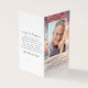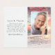 Nossas pequenas cartas de oração memoriais medem 2" x 3,5" quando dobradas. Esta design tem espaço para uma foto do seu amado na frente com seu nome e datas. Dentro, você pode adicionar outra fotografia e um pequeno verso ou oração. Nas costas, você pode adicionar palavras de obrigados. Por favor, note que este cartão não pode ser laminado. Temos uma variedade de cartões de oração laminados planos disponíveis em nossa loja.