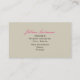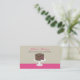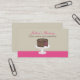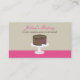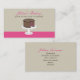 Um simples cartão de visita com uma ilustração de um bolo de camada de chocolate com enchimento de framboesa num suporte de bolo branco. O texto é marrom e rosa. Personalize o front com nome comercial e descrição curta. Personalize o texto marrom novamente com seu nome, cargo e informações de contato.