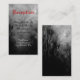 Um modelo de cartão de receptáculo personalizado com a letra preta em vermelho, com letras retrorreflectoras em preto e branco contra um céu com árvores negras, corvos góticos e uma lua de cheio nublada.