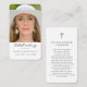Dimensões de cartão de visita: 3,5" x 2,0". Este simples cartão de oração memorial pode ser dado como guardião numa Celebração da Vida ou num serviço funerário ou enviado como homenagem especial aos que não puderam estar presentes. Personalize este cartão com uma foto favorita e sua escolha de oração ou poema na parte traseira do cartão. Fácil de personalizar. As nossas sentidas condolências a si e à família durante este período difícil.