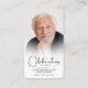 Um simples cartão memorial apresenta "Celebrando a Vida de" com a foto, o nome, as datas de morte por nascimento na frente e a Oração do Senhor e uma cruz atrás Lindo por um tesouro, serviços funerários e a celebração do memorial de vida.