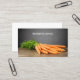 Cenouras personalizáveis modelo de cartão de negócios de fazenda orgânica com uma foto profissional de estúdio de cenouras. Perfeito para fazendas, cozinheiros, fornecedores de refeições, empresas de saúde e de serviços de comida.