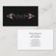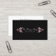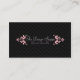 As flores marrons retroradas formam 2 colchetes para colocar seu nome comercial e slogan sobre um fundo preto com sutis texturas de padrão de safra. Este design cartão de visita é ideal para negócios artísticos ou baseados em design. Os detalhes do contato comercial aparecerão na parte traseira do cartão de visita.