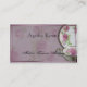 Um grande cartão de visita para aqueles envolvidos com as antiguidades, cerâmica do olhar do vintage, casa de chá e mais! O fundo colorido malva tem rosas cor-de-rosa antigos desvaneceu-se atrás de seu texto e um copo e uns pires do rosa do rosa do vintage à direita.