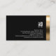 Este impressionante diretor de filmes, bold cartão de visita negro, apresenta uma elegante faixa de reflexão de ouro faux/fotográfica na fronteira inferior. Seu nome e título aparecem logo acima dessa borda padronizada, sobre um fundo preto a jato. O mesmo tema padronizado aparece na parte de trás do cartão, exceto que a faixa está na borda direita. O logotipo da sua empresa e os detalhes de contato aparecem na seção preta da placa. Esta cartão de visita dá uma primeira impressão impressionante e é perfeita para grandes impactos, ativos, moda, estilo, chic, profissional, moderno, sofisticado, abstrato, fotografia, imageamento, filmagem, filme, fotografia, temas artísticos.