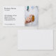 Modelo de cartão de negócios inteiramente customizável com uma foto profissional de um doutor que guardara uma garrafa dos comprimidos.