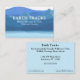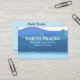Uma pintura aquarela de montanhas e um lago em blues e verdes faz um belo cartão de visita que funcionaria bem para uma empresa de ecoturismo, um guia de natureza selvagem ou até mesmo um resort. A frente tem seu nome comercial, e seu nome e título em branco. O dorso é azul claro, na mesma forma que o lago, com informações adicionais da empresa.