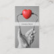 Modelo de cartão de negócios totalmente personalizável com uma foto profissional de um estetoscópio e um coração na mão do homem.