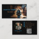 Cartão de visita de barbearia/barbearia que mostra a frente e as costas com fácil acesso ao local de reserva através do código QR.