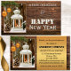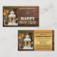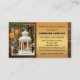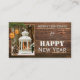 Cartão de visita com uma lanterna acesa com pinho e ouro de natal em um fundo de madeira rústica, com seus desejos de Feriado personalizados. A área de fundo do texto do ouro na parte traseira pode ser excluída se você não precisar dela. Esta cartão de visita é uma bela maneira de dizer obrigado a clientes existentes ou bem-vindos em novos clientes.