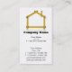 Ferramenta amarela de madeira do medidor que forma uma casa com reflexão para o cartão de visita