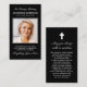 A dor da dor é amplificada quando alguém é levado cedo demais, deixando para trás uma vida de sonhos, aspirações e memórias. Este simples e moderno cartão de oração fúnebre mostra uma foto da pessoa que você está lembrando, um poema que diz "sua presença nós perdemos, sua memória que nós valorizamos, te amando sempre, esquecendo você nunca", junto com seu nome, e os anos vividos. O verso do cartão inclui um poema ou uma oração religiosa que pode ser adaptada aos desejos da família. Esta carta refletida honra a vida de um ente querido de uma forma significativa, ao mesmo tempo que proporciona conforto à família e aos amigos.