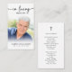 Funeral Forever Hearts Foto Cruzando Cartão de Oração do Jardim de Deus. Mantenha a memória de um ente querido perto com este cartão de oração personalizado com uma foto tesourada, o título EM MEMÓRIA DE AMOR, o nome e as datas na frente e uma oração editável ou a mensagem de lembrança destacada com uma cruz (a amostra mostra o poema "Jardim de Deus"). Com a sua design preto e branco clássico simples, mas elegante, e a moderna tipografia de escrita manuscrita, ela faz uma manutenção significativa para partilhar num funeral, num serviço de memorial ou na Celebração da Vida e oferece conforto e um tributo duradouro à família e aos amigos. Seu pequeno e portátil tamanho de 3,5x2" (tamanho de carteira) torna conveniente que os entes queridos o carregar com eles como um lembrete da vida e do espírito de seu ente querido. A personalização torna cada placa única.