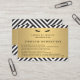 Coordena-se com o Glam Eyelashes com o Modelo de cartão de negócios Bold Pattern até 1201AM. Um padrão gráfico em negrito, preto e branco preenche o plano de fundo deste modelo de placa de pós-tratamento de salão de lash. As pestanas pretas, juntamente com o seu nome ou nome comercial, são colocadas numa falso tira de ouro para um efeito glamouroso. Cartões de instruções únicos e oculares para extensões de pestanas, maquiadores, salões de lash, empresas cosméticas e muito mais. Arte e design © 1201AM Design Studio | www.1201am.com