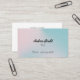 Este cartão de visita tem um simples e moderno design de gradiente em tons de rosa e azul. Eu incluí modelos na frente e atrás para sua própria informação e personalização. Há várias opções de papel disponíveis, certifique-se de comparar a espessura e o brilho que seriam adequados para sua empresa. Todos os itens são preenchidos pelo Zazzle e são 100% de satisfação garantida. Para problemas de pedidos e envio, entre em contato com o Suporte ao cliente da Zazzle via https://goo.gl/nCgptf