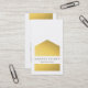 Uma elegante e moderna casa geométrica de ouro com nome e título simples na frente. Detalhes editáveis no verso em branco. Personalizar para alterar fontes e cores. (folha de ouro é uma imagem impressa)