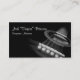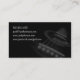 O topo de uma guitarra acústica em tons brancos negros está no lado direito desta design, vendo a corda do violão a partir da ponte para cima passando o buraco do som até o pescoço da guitarra. O simples, mas elegante design faz disso o cartão de visita perfeito para músicos, especialmente guitarristas.