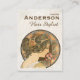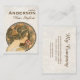 Cartão de visita mostrando o rosto de uma bela mulher com um penteado elegante e elaborado, cercado por flores decorativas. Adequado para cabeleireiros, cabeleireiros, floristas e outras ocupações relacionadas a cabelos, flores, arte, design e beleza. Feito de uma pintura do famoso artista checo Art Nouveau Alphonse Mucha (Primrose, 1899). Personalize com seus próprios detalhes comerciais. Basta digitar sobre os textos de exemplo nas caixas abaixo do título 'Editar este modelo de design'.