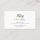 Cartão de visita Whimsical e elegante perfeito para floristas, planejadores de eventos, designers, blogueiros e muito mais. Este cartão de visita floral apresenta híbridos de aquarelas azuis e roxas, peonias, anêmonas e folhagem.