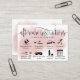 Ícones modernos de extensões de pestana de cartão de pós-tratamento e cor-de-água rosa/rosa empoeirada - use estas instruções de pós-tratamento com instruções ilustradas para seus clientes. No verso, você pode adicionar seu logotipo / opcional e suas informações de contato, assim como suas contas de mídia social.