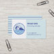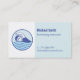 Um cartão de visita com o logotipo de uma arte azul moderna de um nadador com óculos e bonés natações nadando entre as ondas. Perfeito para instrutores e salva-vidas. Personalize facilmente suas informações nos modelos de texto fornecidos.