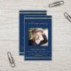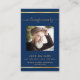 Um fundo azul marinho, uma falso estrutura dourada e espaço para sua foto. Personalize e adicione nome, datas e texto.