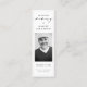 Crie um belo e significativo tributo com nosso Simple Funeral Memorial Prayer Photo Bookmark Card. Este marcador personalizável apresenta um design simples e minimalista, fazer que seja uma escolha perfeita para qualquer memorial ou serviço funerário. A inclusão de uma foto permite personalizar o marcador com uma lembrança carinhosa do seu amado. A carta também inclui uma oração corajosa, que proporciona conforto e consolo durante este período difícil. Com as palavras "In Loving Memory" mostradas elegantemente, este marcador serve como uma emocionante salvaguarda e lembrete do impacto persistente que seu ente querido teve na sua vida e na vida de outros. Compartilhe esses marcadores com a família e os amigos como um gesto atencioso ou distribua-os como um favor memorial durante o serviço funerário. Escolha nosso Cartão de Visita Fotográfica Simples do Memorial Orador Funeral para homenagear a memória de seu ente querido e oferecer um tributo duradouro que será apreciado por todos.
