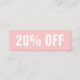 Cartão de desconto moderado, moderno e simples, em cor-de-rosa pastel.