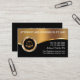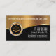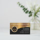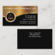 Modelo de cartão de visita de negócios de procurador com elementos de design de ouro simulados impressos digitalmente, incluindo o emblema de justiça em escala dourada, juntamente com um layout de texto que você pode personalizar facilmente on-line. Concebidos como cartão de visita de advogado para uma prática de direito ou serviços jurídicos.
