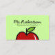 Modelo de cartão de negócios de professor com design de maçã vermelha. Ensino básico e cartões de tutor para aulas de gramática ou jardim de infância. Gráficos de educação vetorial.