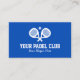 Modelo de cartão de negócios de treinador profissional de Tênis. Cartões de visita personalizados com design de marca d'água de raquetes. Ícone desportivo com tipografia moderna para nome e slogan. Fundo de cor azul ou personalizado. Cartões de visitas profissionais para trabalhos de padel, trabalho, jogador, fã e treinador de malhações. Disponível em diferentes tamanhos, espessura de papel e forma recortada de canto redondo. Altere a quantidade para obter o preço do pacote de massa barato. Cartões pessoais para treinador de clubes, professor universitário, instrutor pessoal, parceiro de embate, assistente, compro, loja de esportes, parceiro de pouso, empresário independente, chefe de empresa, colegas de trabalho, funcionarios, pessoal de corte, gerente de lideranças, gerente de quadras tênis, funcionários, voluntários, orientador, umpire, mãe, pai etc. Impresso em ambos os lados.