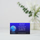 Modelo de cartão de negócios com o globo do mundo que reflete no fundo preto e azul