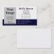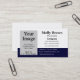 Um modelo de cartão de negócios simples, branco e azul marinho, adicione sua própria imagem ou logotipo para personalizar esses cartões de visitas.