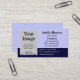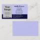 Um modelo de cartão de negócios simples com fundo azul-céu e uma faixa azul marinho na parte inferior. Adicione sua própria imagem ou logotipo para personalizar esses cartões de visitas. Clique em Personalizar para alterar fontes, remover campos, alterar cores de fundo e muito mais.