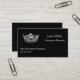 Este modelo de cartão de negócios feito sob encomenda é mostrado em uma cor preta com um texto da amostra no branco e tem um impressão da coroa da representação histórica. Personalize e mude a informação da amostra a sua.