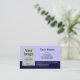 Um modelo de cartão de negócios simples com sans serif letters e um fundo azul-céu e uma faixa azul marinho no fundo. Adicione sua própria imagem ou logotipo para personalizar esses cartões de visitas. Personalize-o para alterar as fontes do cartão, remover campos, alterar as cores de fundo e muito mais.