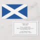 Modelo de cartão de negócios de bandeira escocês. Cartões de visita profissionais com pavilhão da Escócia. Cartões de visita modernos para funcionários de escritório, chefe, tradutor, empresa de tradução, freelancer, professor universitário, empresa patriótica, compro, loja, escritório, agência de viagem, etc. Escolha entre diferentes qualidades de papel e espessuras.