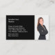 Substitua a nossa imagem de um Realtor pela sua própria imagem de retrato e personalize as informações do realtor para fazer deste cartões de visitas de imóveis profissionais.