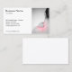 Modelo de cartão de negócios totalmente personalizável com uma foto profissional das costas de uma mulher.