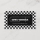 Cartão de visita de verificação em preto-e-branco com iniciais.