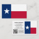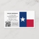 Cartões de visitas cartão de visita do Texas moderno com a bandeira do Texas em um lado e seus detalhes junto com o código QR digitalizável, pequena bandeira do Texas no outro lado. Personalize facilmente o link no Código QR do seu site ou número de telefone celular, personalize o nome, os detalhes do endereço ou altere o sinalizador no lado do logotipo da sua empresa, foto pessoal ou qualquer outra imagem. Faça da sua conta ou apenas faça o cartão para mudar de casa.