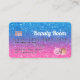 Um elegante cartão de visita do estilo de cartão de crédito de beleza na moda com uma tipografia de fontes moderna em um plano de fundo azul brilhante brilhante brilhante brilhante e azul de tendência de febre. todo o texto é personalizável, adicione suas mídias sociais. Apresentando falso rosa dourado. Adicione seu logotipo, seu monograma e código QR.