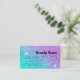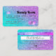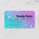 Um elegante e moderno, na moda, Cabelo de beleza e cartão de visita do estilo de cartão de crédito artístico de maquiagem, com uma tipografia de fontes moderna em um plano de tendências da sereia quic roxa turquesa ombre glitter. todo o texto é personalizável, adicione suas mídias sociais. Adicione seu logotipo, seu monograma e código QR.