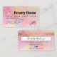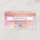 Um elegante cartão de visita do estilo de cartão de crédito de beleza na moda com uma tipografia de fontes moderna num fundo de moda de mármore do arco-íris holográfico de falso chic pastel holográfico. todo o texto é personalizável, adicione suas mídias sociais. Apresentando falso rosa dourado. Adicione seu logotipo, seu monograma e código QR.
